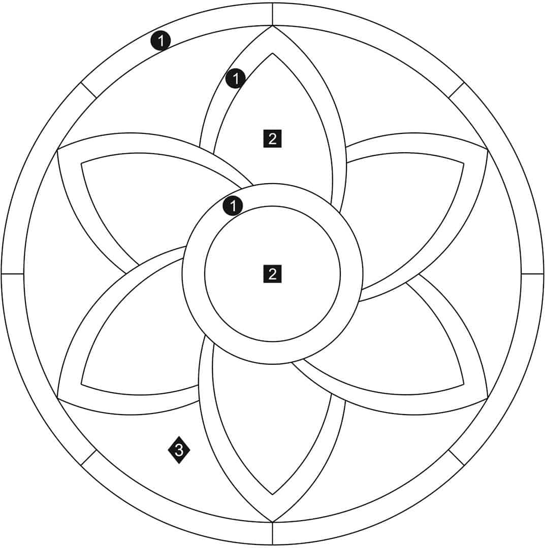 Download a PDF to help with custom configuration. Waterjet cut natural stone medallion, made to order. Cut from 12-inch x 12-inch x 3/8-inch tile (or 1/2-tile or 3/4-inch slab for an additional charge). Production time is 4 – 6 weeks for standard sizes and readily available materials. Cut/grout lines will vary depending on size of design. Above diagram may not reflect actual cut lines of your medallion. Natural stone will vary in color and veining. Color and veining differences are not considered defects. Any samples, pictures, or printouts are only examples of what the medallion may look like.