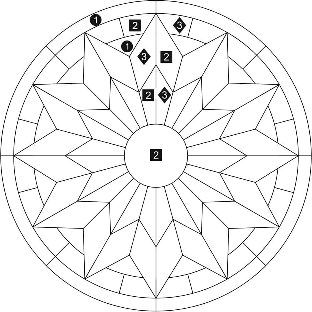 Download a PDF to help with custom configuration. Waterjet cut natural stone medallion, made to order. Cut from 12-inch x 12-inch x 3/8-inch tile (or 1/2-tile or 3/4-inch slab for an additional charge). Production time is 4 – 6 weeks for standard sizes and readily available materials. Cut/grout lines will vary depending on size of design. Above diagram may not reflect actual cut lines of your medallion. Natural stone will vary in color and veining. Color and veining differences are not considered defects. Any samples, pictures, or printouts are only examples of what the medallion may look like.