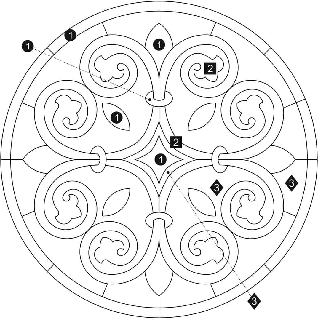 Download a PDF to help with custom configuration. Waterjet cut natural stone medallion, made to order. Cut from 12-inch x 12-inch x 3/8-inch tile (or 1/2-tile or 3/4-inch slab for an additional charge). Production time is 4 – 6 weeks for standard sizes and readily available materials. Cut/grout lines will vary depending on size of design. Above diagram may not reflect actual cut lines of your medallion. Natural stone will vary in color and veining. Color and veining differences are not considered defects. Any samples, pictures, or printouts are only examples of what the medallion may look like.