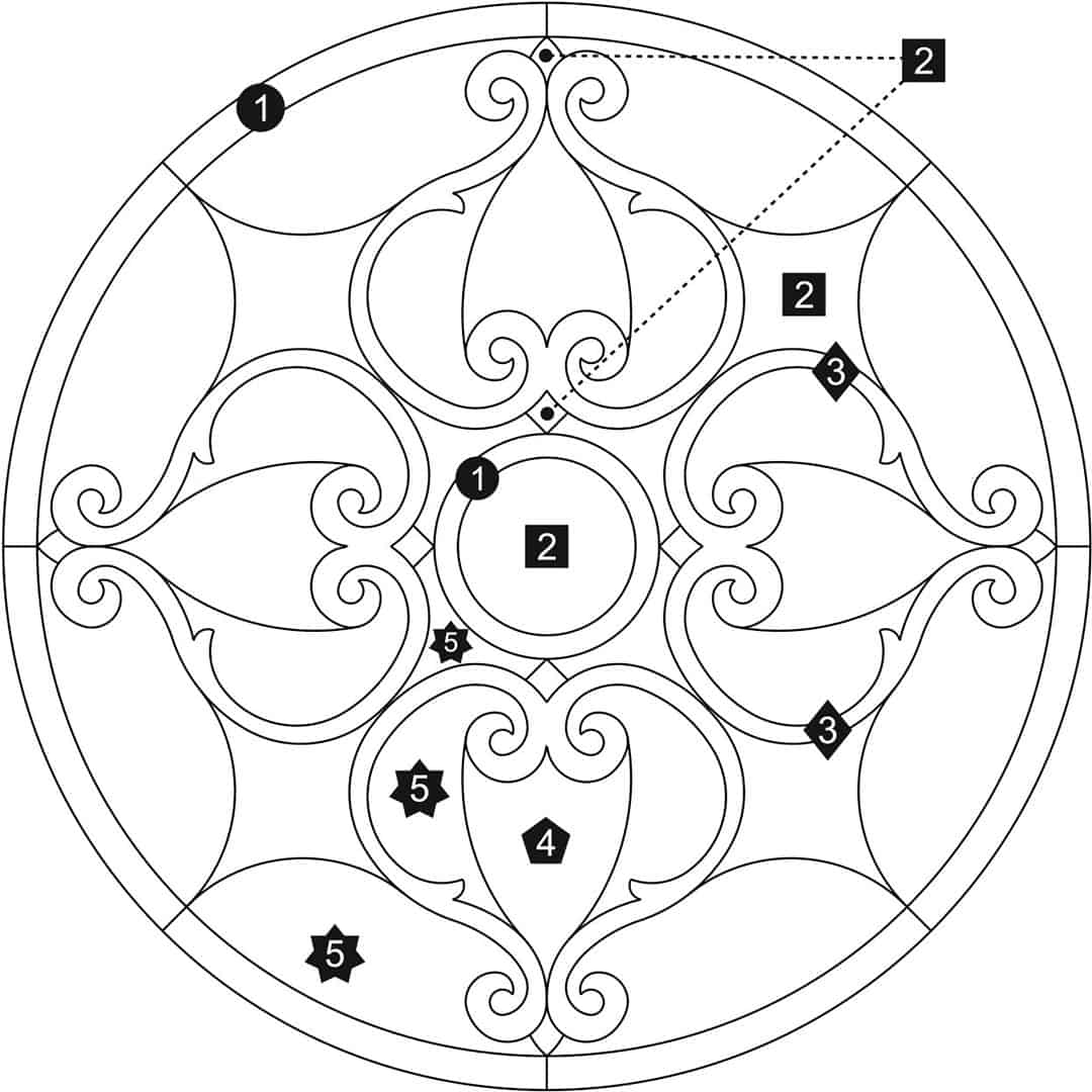 Download a PDF to help with custom configuration. Waterjet cut natural stone medallion, made to order. Cut from 12-inch x 12-inch x 3/8-inch tile (or 1/2-tile or 3/4-inch slab for an additional charge). Production time is 4 – 6 weeks for standard sizes and readily available materials. Cut/grout lines will vary depending on size of design. Above diagram may not reflect actual cut lines of your medallion. Natural stone will vary in color and veining. Color and veining differences are not considered defects. Any samples, pictures, or printouts are only examples of what the medallion may look like.