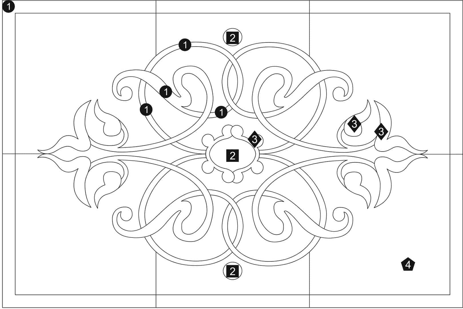 Download a PDF to help with custom configuration. Waterjet cut natural stone medallion, made to order. Cut from 12-inch x 12-inch x 3/8-inch tile (or 1/2-tile or 3/4-inch slab for an additional charge). Production time is 4 – 6 weeks for standard sizes and readily available materials. Cut/grout lines will vary depending on size of design. Above diagram may not reflect actual cut lines of your medallion. Natural stone will vary in color and veining. Color and veining differences are not considered defects. Any samples, pictures, or printouts are only examples of what the medallion may look like.